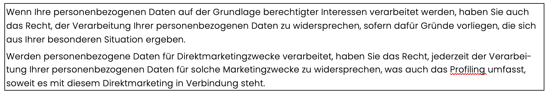 9.2. Sie können Auskunft über Ihre von uns verarbeiteten personenbezogenen Daten verlangen. Insbesondere können Sie Auskunft über die Zwecke der Verarbeitung, die Kategorie der personenbezogenen Daten, die Kategorien der Empfänger, an die Ihre Daten weitergegeben wurden oder werden, die vorgesehene Speicherdauer, das Bestehen eines Rechts auf Berichtigung, Löschung, Einschränkung der Verarbeitung oder Widerspruch, das Bestehen eines Beschwerderechts, die Quelle Ihrer Daten, wenn diese nicht direkt bei Ihnen erhoben wurden, und das etwaige Bestehen einer automatisierten Entscheidungsfindung einschließlich Profiling sowie gegebenenfalls aussagekräftige Informationen über die Einzelheiten derselben zu verlangen.